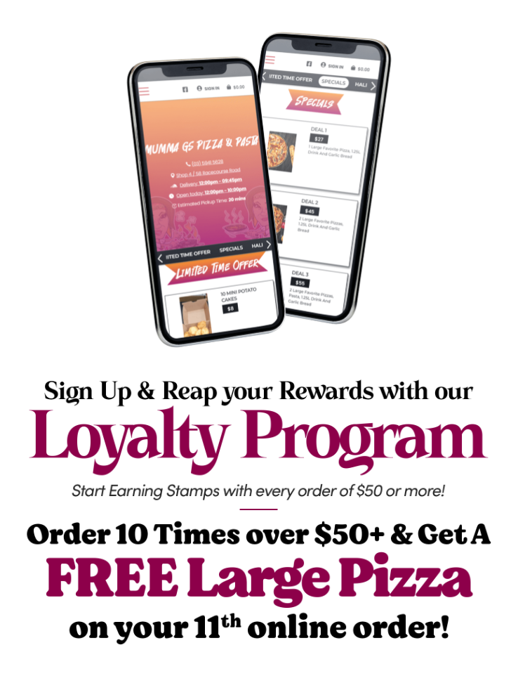 Mumma G's is a local and family owned pizzeria in Pakenham with affordable prices and great tasting pizzas with fresh ingredients. Drop in and say hi to our friendly staff.